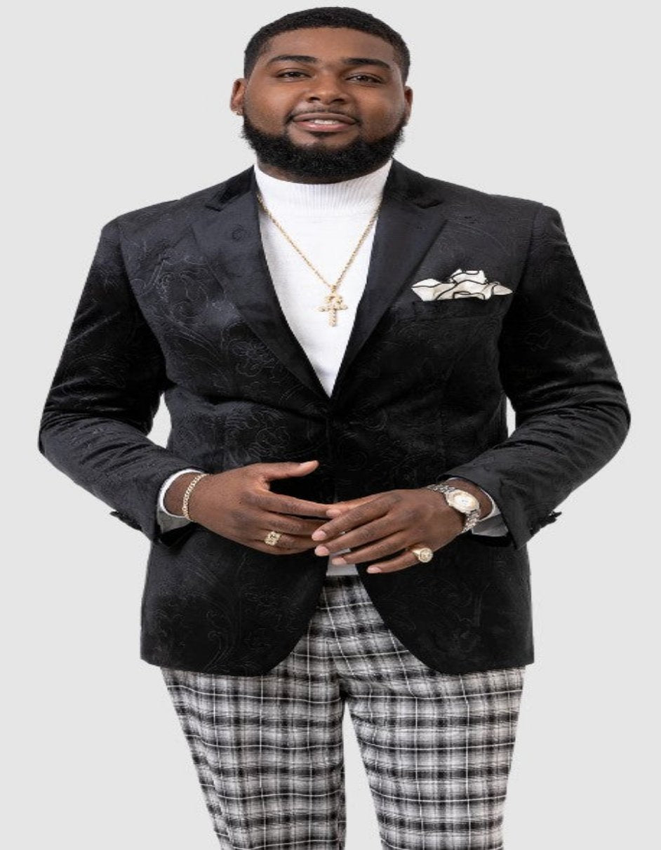 Blazer Paisley - Chaqueta de esmoquin para fiesta de graduación - Chaqueta deportiva de terciopelo en color negro