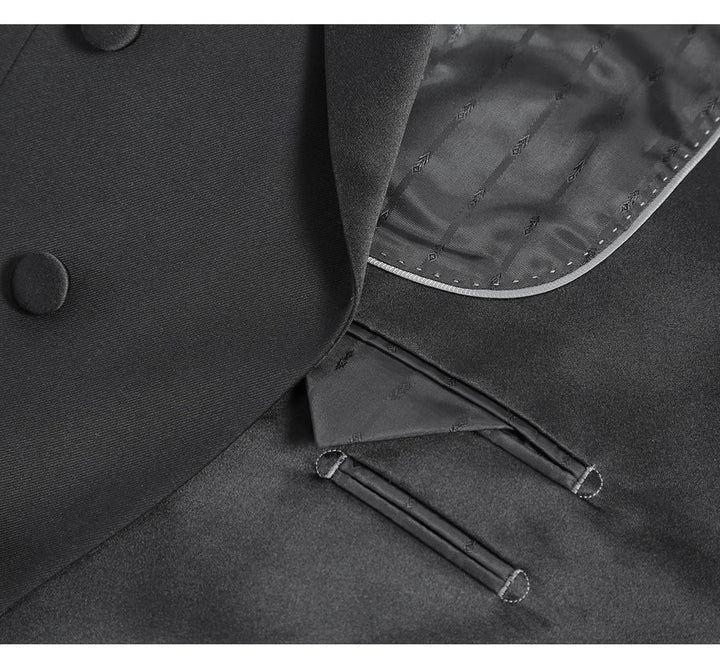 Classic fit,Six decorative buttons,Full dress tails with center vent,Satin-faced Peak Lapel