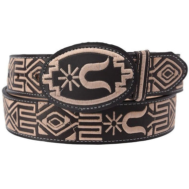 Cinto moderno de piel con disenos grabados. Este cinturon vaquero tipo ranger funciona con ropa casual y de vestir, tanto para hombre como para mujer. Hecho en Mexico. Modern leather belt with engraved designs. This fine western belt ranger style works with both casual...- $49.99