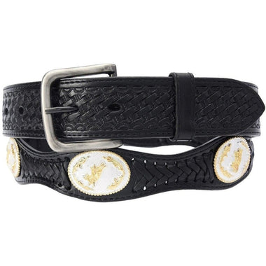 Piel: Vacuna Adornado con conchos o chapetones de metal Estilo: Vaquero Color: Negro Ancho: 1.5" Made in Mexico- $59.99