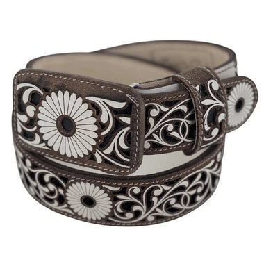 Cinto Vaquero para Mujer de Cuero Cincelado Original Color Cafe y Blanco RD
