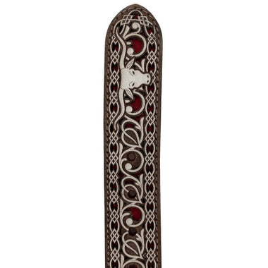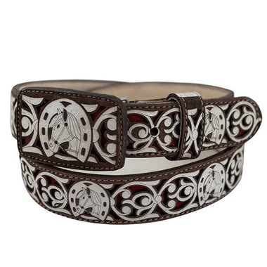 Confeccionado a Mano por Maestros Artesanos Fina Piel de Cuero Vacuno Cincelado Original Adornado con Caballo y Herradura Estilo: Vaquero Color: Cafe con Blanco y Rojo Ancho: 1.5" (1.5 Pulgadas) Marca: Rodeo Durango Made in Mexico- $59.99