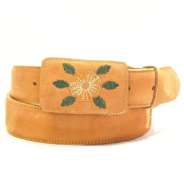 Confeccionado a Mano por Maestros Artesanos Fina Piel de Cuero Vacuno Gamuza (Nobuck) Original Bordado con Girasoles Estilo: Vaquero Color: Miel Ancho: 1.5" (1.5 Pulgada) Marca: El General Made in Mexico- $59.99