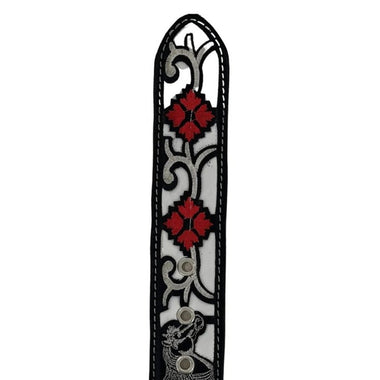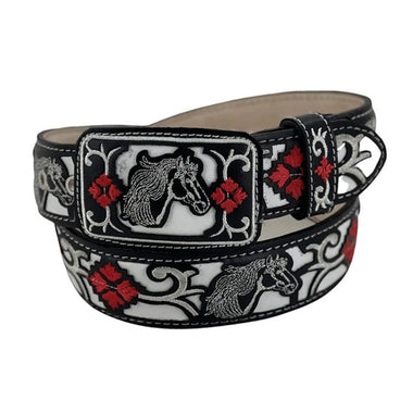 Confeccionado a Mano por Maestros Artesanos Fina Piel de Cuero Vacuno Original Bordado con Caballo y Flores Rojas Estilo: Vaquero Color: Negro con Bordado Blanco Ancho: 1.5" (1.5 Pulgadas) Marca: Rodeo Durango Made in Mexico- $59.99