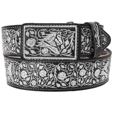 Piel: Vacuna Bordado Ancho con Hilo Metalico Estilo: Vaquero Color: Negro Ancho: 2.125" (2.125 Pulgadas) Fabricado en Mexico- $64.95
