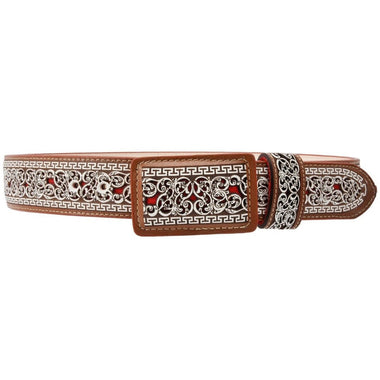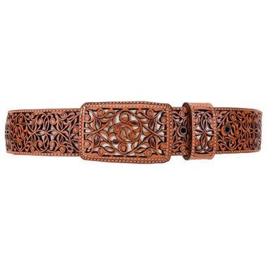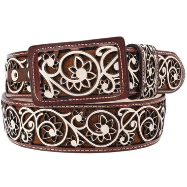 Cinto Vaquero de Cuero Original en Corte Laser Color Shedron con Flor WD