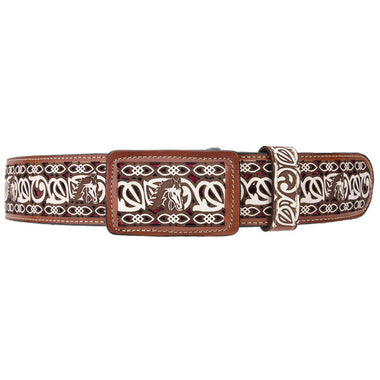 Cinto Vaquero de Cuero Original en Corte Laser Color Miel con Grecas WD