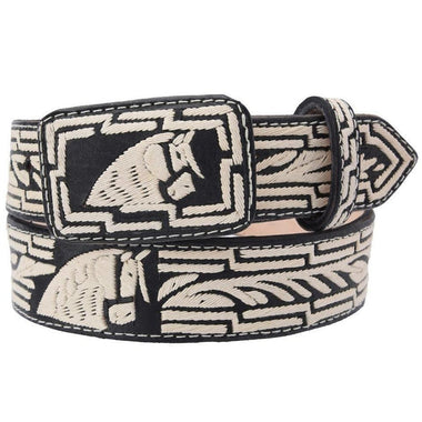 Confeccionado a mano por Maestros Artesanos Fina Piel de Cuero Vacuno Decorado con Flor Corte Laser Estilo: Vaquero Color: Negro con Blanco Ancho: 2 1/8" Pulgadas Marca: White Diamonds Boots Made in Mexico- $79.95