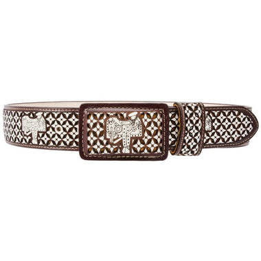 Cinto Vaquero de Cuero Original en Corte Laser Color Cafe con Grecas WD