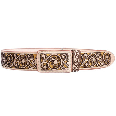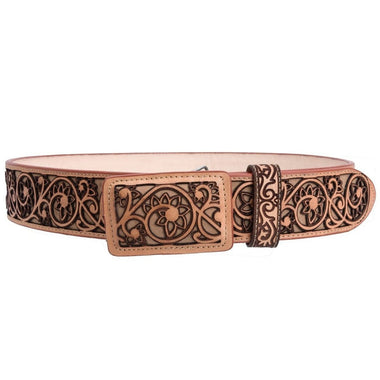 Cinto Vaquero de Cuero Original en Corte Laser Color Natural con Flor WD