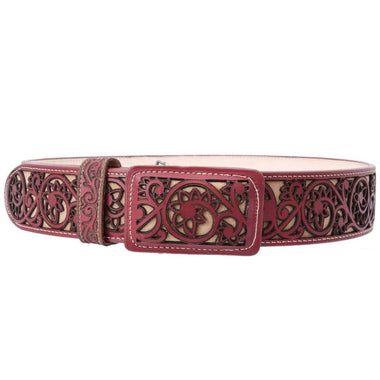 Confeccionado a mano por Maestros Artesanos Fina Piel de Cuero Vacuno Decorado con Flor Corte Laser Estilo: Vaquero Color: Shedron Ancho: 2 1/8" Pulgadas Marca: White Diamonds Boots Made in Mexico- $79.95