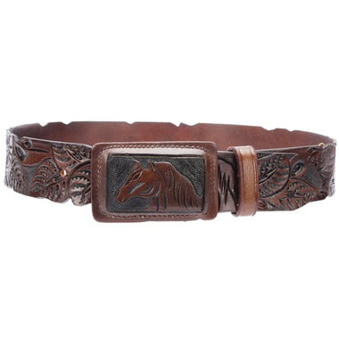 Cinto Vaquero de Cuero Cincelado Original Color Cafe con Caballo WD