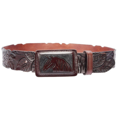 Cinto Vaquero de Cuero Cincelado Original Color Vino con Caballo WD