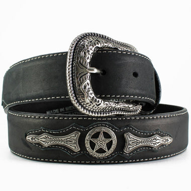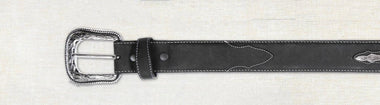 Cinto Vaquero de Cuero Cuernos Chuecos Color Negro