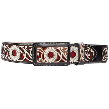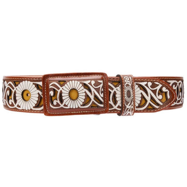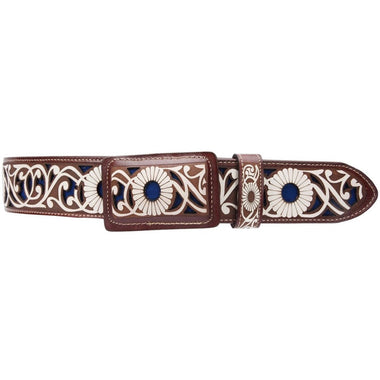 Cinto Vaquero de Cuero Original en Corte Laser Color Cafe con Flor WD