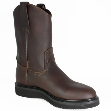Color: Brown Width: D & EW Shaft: 11" Leather Shaft Heel: 1" Stockman Heel Lining: Leather Toe: Broad Square Outsole: Rubber & Leather Comfort System: Removable Antibacterial & Antifungal Soft Strike Orthotic- $213.00