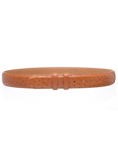 Men's Smooth Genuine Ostrich Quill Skin Belt Cognac