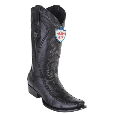 Confeccionadas a mano por Maestros Artesanos Fina Piel de Pata Avestruz de Primera Calidad Color: Negro Horma: Europea Suela de Vaqueta Tacon de 1.5" pulgadas de alto Ancho: EE Marca: Wild West Boots Fabricadas en Leon, Guanajuato, Mexico- $359.99