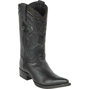 Confeccionadas a mano por Maestros Artesanos Fina Piel de Alce Original de Primera Calidad Color: Negro Horma: Puntal (J-Toe) Suela de Vaqueta Tacon de 1.5" pulgadas de alto Ancho: EE Marca: Wild West Boots Fabricadas en Leon, Guanajuato, Mexico- $239.95