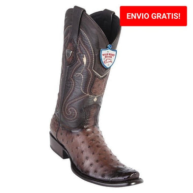 Confeccionadas a mano por Maestros Artesanos Fina Piel de Avestruz Original de Primera Calidad Montura con Cuero Color: Cafe Horma Cuadrada Ancha Suela de Hule Tacon de 1.5" pulgadas de alto Ancho: EE Marca: Wild West Boots Fabricadas en Leon, Guanajuato, Mexico- $519.99