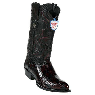 Confeccionadas a mano por Maestros Artesanos Fina Piel de Pata de Avestruz Original Color: Negro Rojizo Horma: Puntal Suela de Vaqueta Tacon de 1.5" pulgadas de alto Ancho: EE Marca: Wild West Boots Fabricadas en Leon, Guanajuato, Mexico- $359.99