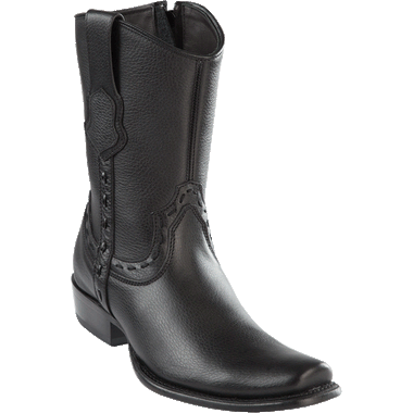 Botines Charros de Venado Punta Cuadrada con Zipper Color Negro WW
