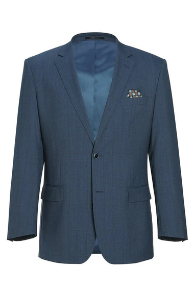 Sacos Vaqueros - Sacos Para Hombre - Mens Two Button Classic Fit Wool Sport Coat Blazer In Steel Blue Windowpane Plaid