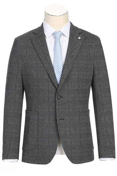 Sacos Vaqueros - Sacos Para Hombre - Men's Two Button Regular Fit Sport Coat In Grey & Bronze Windowpane Plaid