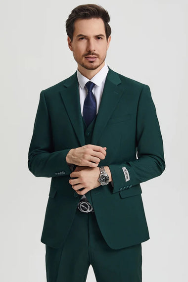 Trajes Elegantes Para Hombre - Trajes De Vestir - Mens Two Button Vested Stacy Adams Hunter Green Designer Suit