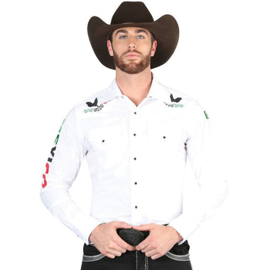Camisa Vaquera Bordada El General Blanco con Mexico GEN