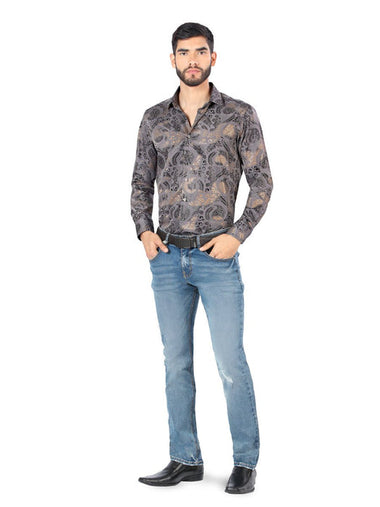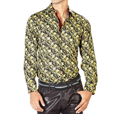 Camisa Vaquera de Moda El Senor de los Cielos Camisa de Moda Material: Polyester Color: Negro con Dorado- $69.95