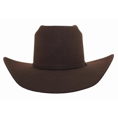 Felt hat features a 5" brick crown with 4 1/4' bull-rider brim styling.-