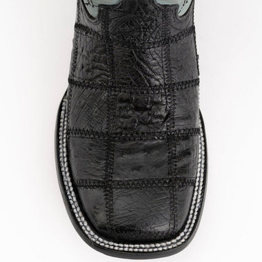 Ferrini Men's Pinto Patch Ostrich Square Toe Boots Handcrafted - Black