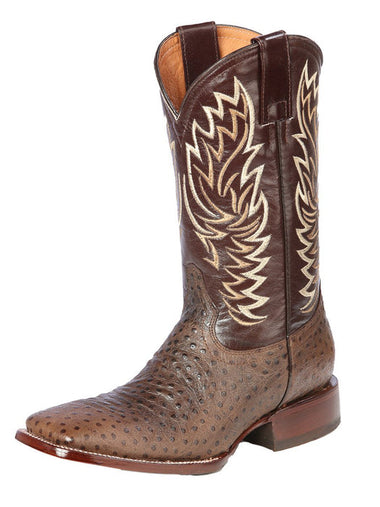Botas de Avestruz Grabado Horma Rodeo Cuadrada Color Cafe JAR
