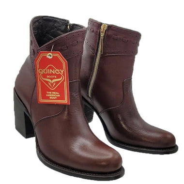 Confeccionadas a mano por Maestros Artesanos Fina Piel de Piel de Borrego Original Color: Vino Horma: Oval Tacon de 2 1/8" pulgadas de alto Marca: Quincy Boots Made inMexico- $219.99