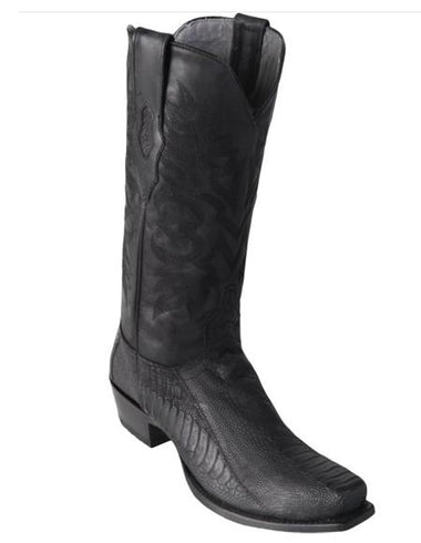 Botas de Avestruz Grabado Horma Rodeo Cuadrada Color Negro JB