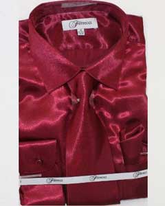 Color: Borgoña De los hombres Brillante Lujoso Camisa- $75.00
