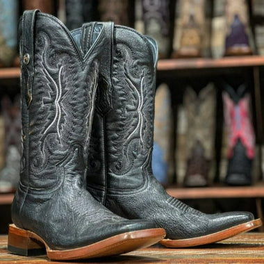 Men's Genuine Full Quill Ostrich Square Toe Boots Mojave Black