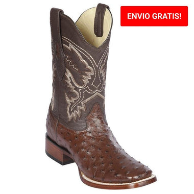Botas de Avestruz Original Punta Cuadrada Color Cafe