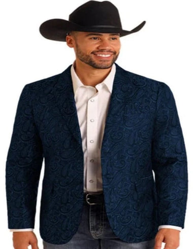 Mens Western Blazer - Paisley Pattern Cowboy Tuxedo Jacket in Color Navy