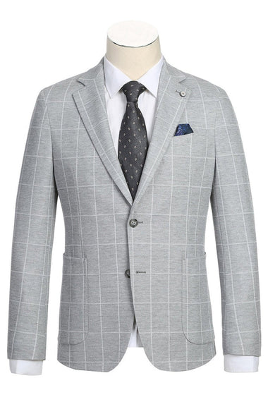Western Sport Coat - Western Blazer Mens Half Canvas Unconstructed Sport Coat Blazer in Light Grey and White Windowpane Plaid