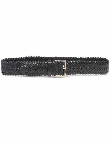 Hand-Woven, Hand-Burnished European Calfskin Belt Hi-Shine Silver Buckle Soft Leather Nubuck Backing Color: Black- $168.00