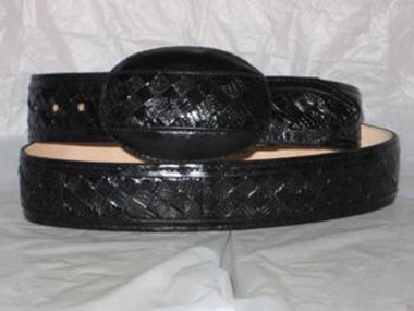 Genuine Black Weave Lizard Teju Western Cowboy Belt. Color – Black. Material – Original Lizard Teju skin. Inner fine leather finishing. Genuine Black weave provides perfect outfit accessory in cow boy suit. Thickness - 5mm. Width - 1 ½ inch. Natural pattern with Interchangeable...- $179.00