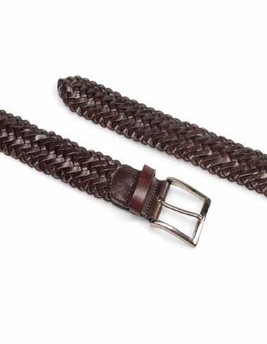 Hand-Woven, Hand-Burnished European Calfskin Belt Hi-Shine Silver Buckle Soft Leather Nubuck Backing Color: Brown- $179.00