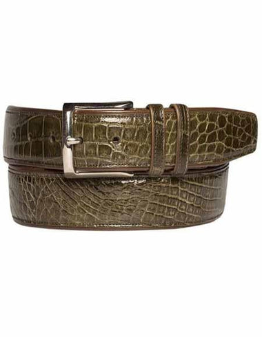Genuine Alligator Full Grain Leather Backing Silver Semi Gloss Buckle Handmade In Spain Color: Olive- $515.00