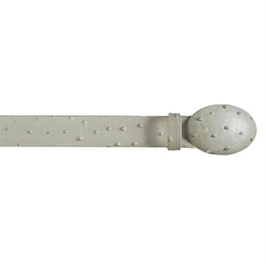 Men's Smooth Genuine Ostrich Quill Skin White Belt