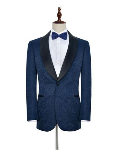 One Button Shawl Lapel Besom Pockets Four cuff Link Double Vents Floral Pattern Material : Fabric Color : Navy Blue- $1,220.00