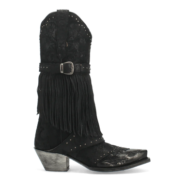 Life will feel like a Bed of Roses in this stunning boot. Crafted with premium leather and loaded with details from the rose-embossed leather shaft down to the buckled fringe and metallic snip toe. Comes with a Soft Strike Removable Orthotic for added comfort....- $310.00