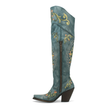 Dan Post Women's Flower Child Snip Toe Leather Tall Boots - Turquoise