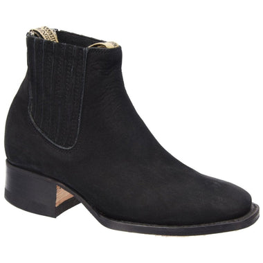 Botines Charros de Gamuza Punta Cuadrada para Joven Color Negro WD-347